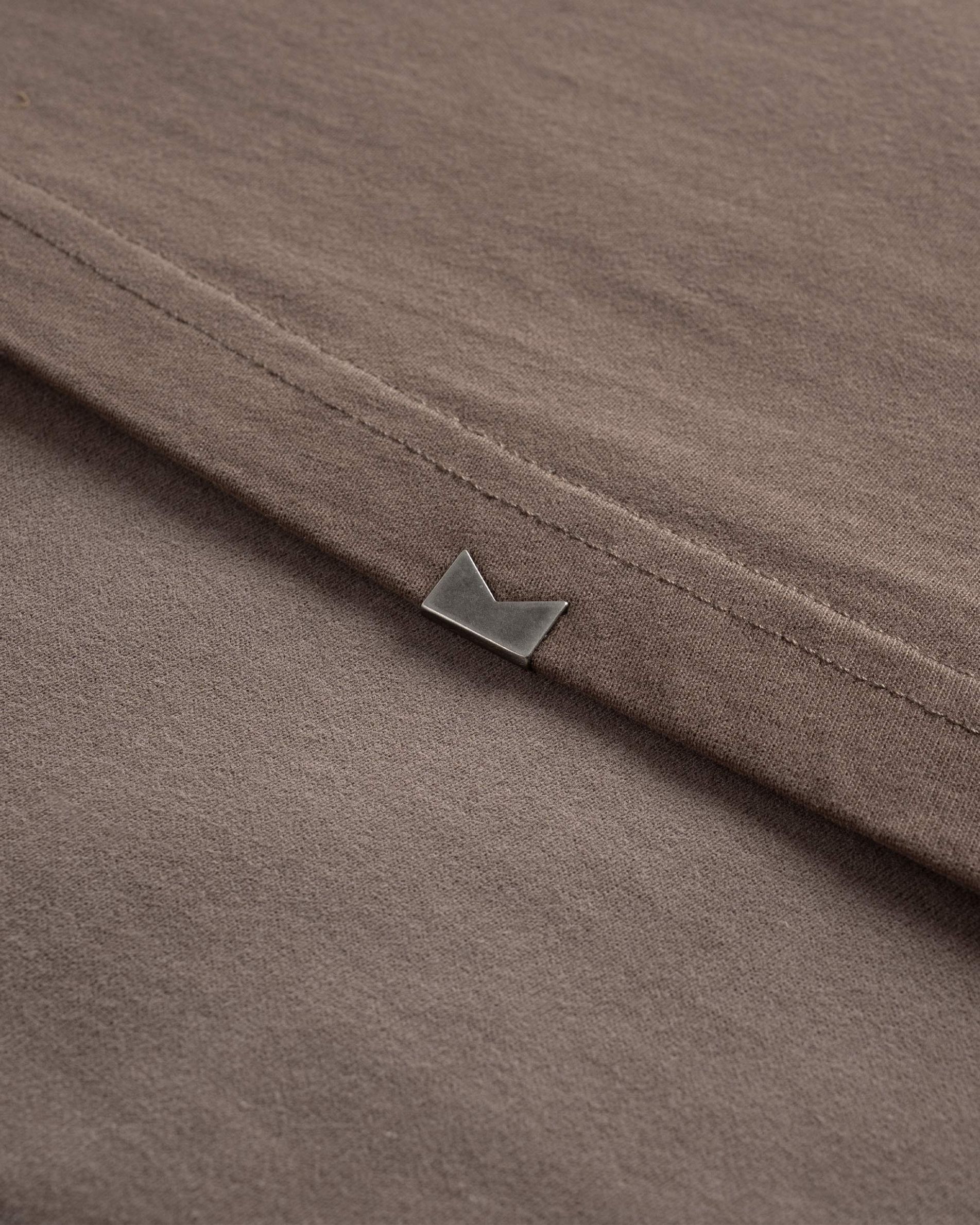 La camiseta Art of Living se presenta en un tono capuchino con un ligero efecto descolorido y retoma directamente la referencia al café de la colección. El eslogan «Art of Living» aparece en la espalda, complementado con un logotipo minimalista en la parte delantera, ambos realizados con el proceso de estampado al agua e incorporados directamente en el tejido, sin aplicación perceptible. La tipografía serif con letras iniciales pronunciadas evoca una sutil influencia de los años setenta y aporta profundidad tipográfica a la prenda.