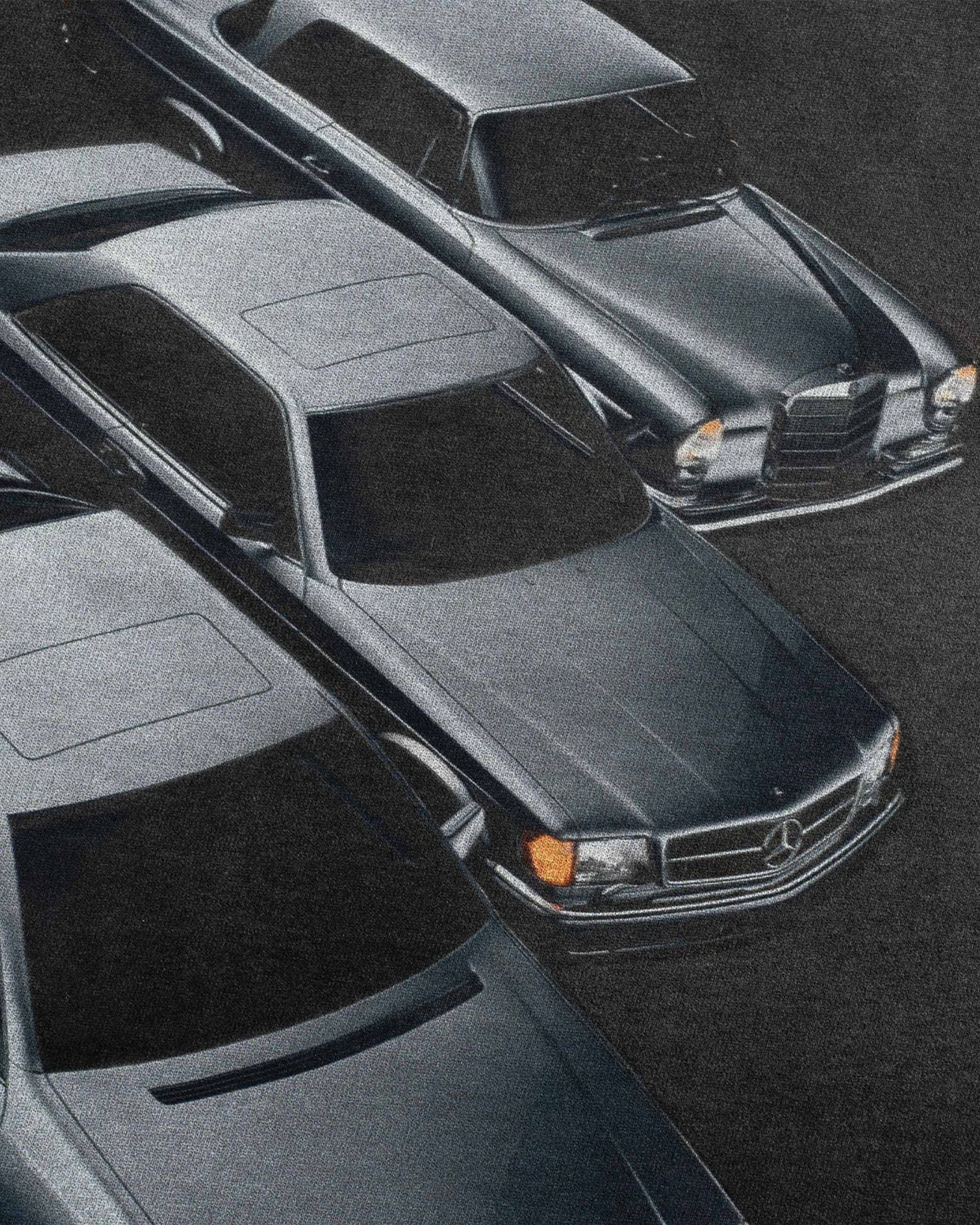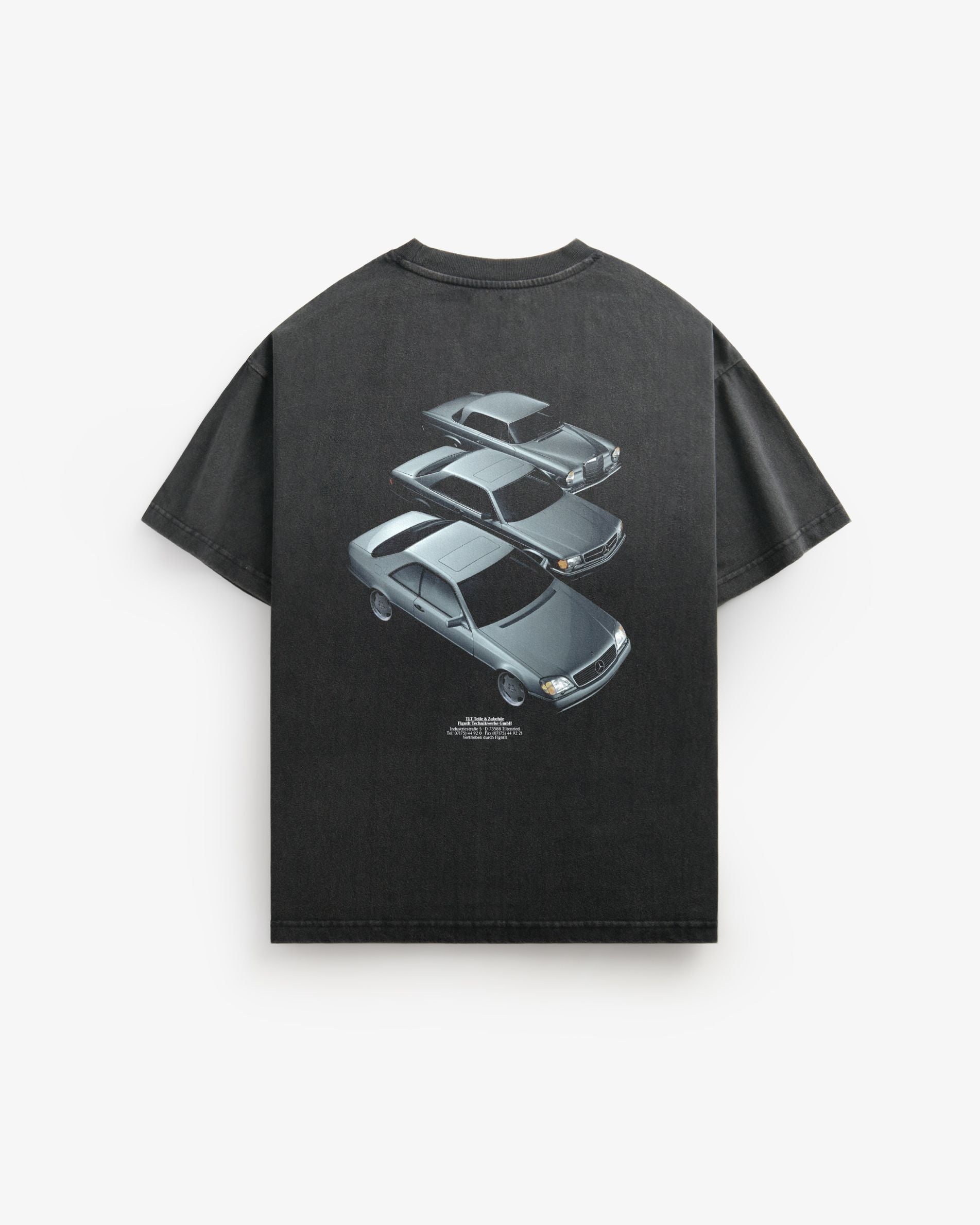Das Cortège T Shirt erscheint in Schwarz mit leichter Vintage Waschung und dezentem Sunfade, wodurch das Material den Charakter eines getragenen Archivstücks erhält.