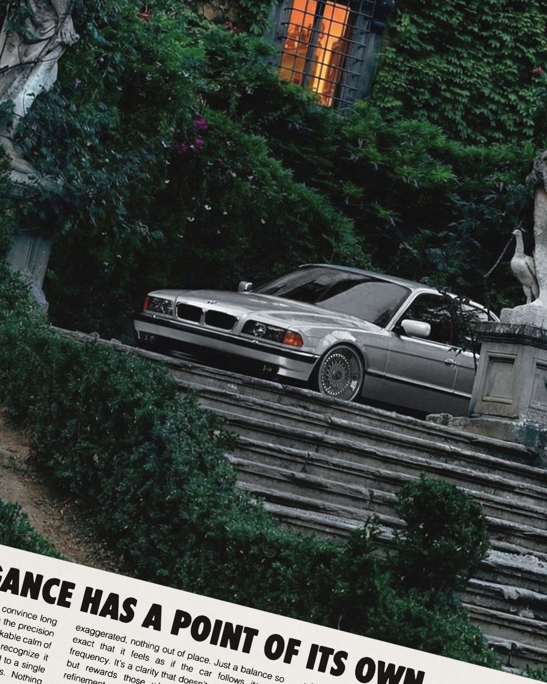 Der Art of Living Artprint zeigt das Aquarellmotiv mit einem weißen E30 M3 vor der Silhouette eines Mid Century Hauses. Fahrzeug und Architektur werden in klaren Flächen und Linien zusammengeführt. Als eigenständiges Objekt gedacht, funktioniert der Print in der Garage ebenso wie im Wohnraum. Ein Motiv, das Car Culture und architektonische Gestaltung dauerhaft in einem Bild verbindet.